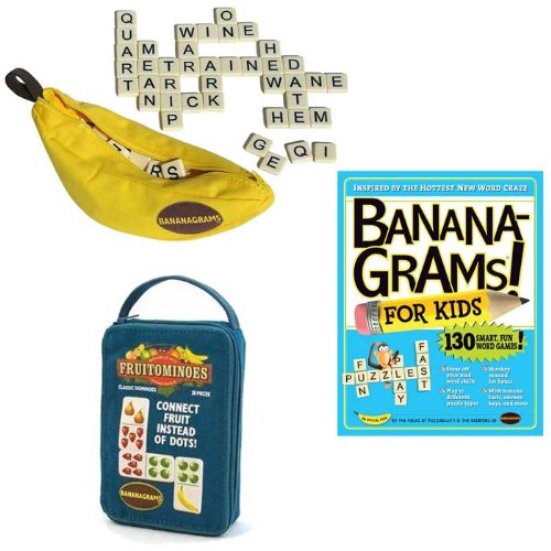 Puzzability, the premier puzzle-writing company who wrote The Brainiest Insaniest Ultimate Puzzle Book! and whose mind-benders have appeared in Disney Adventures, Nickelodeon magazine, The New Yorker, and The New York Times, creates original and unexpected word puzzles that capture the quick-on-your-feet spirit of Bananagrams. There are over a dozen of banana-themed varieties, including Bunched Up (a mini-crossword), Monkey in the Middle (building a larger word out of two smaller words, with clues), Banana Pancakes (a stack of anagrams using letters in common), and Going Bananas (complete a sentence with two different words made from the same letters).